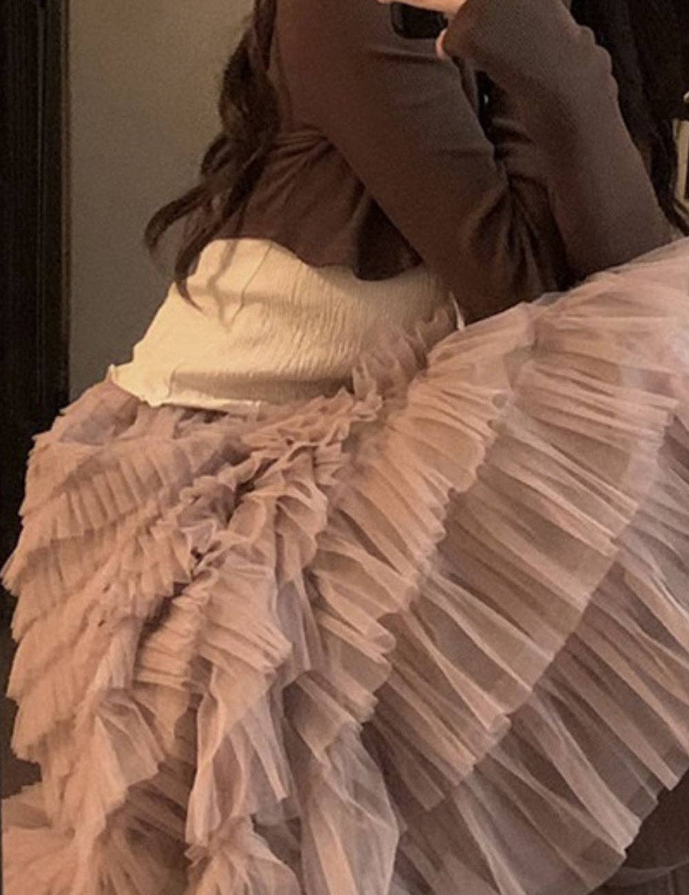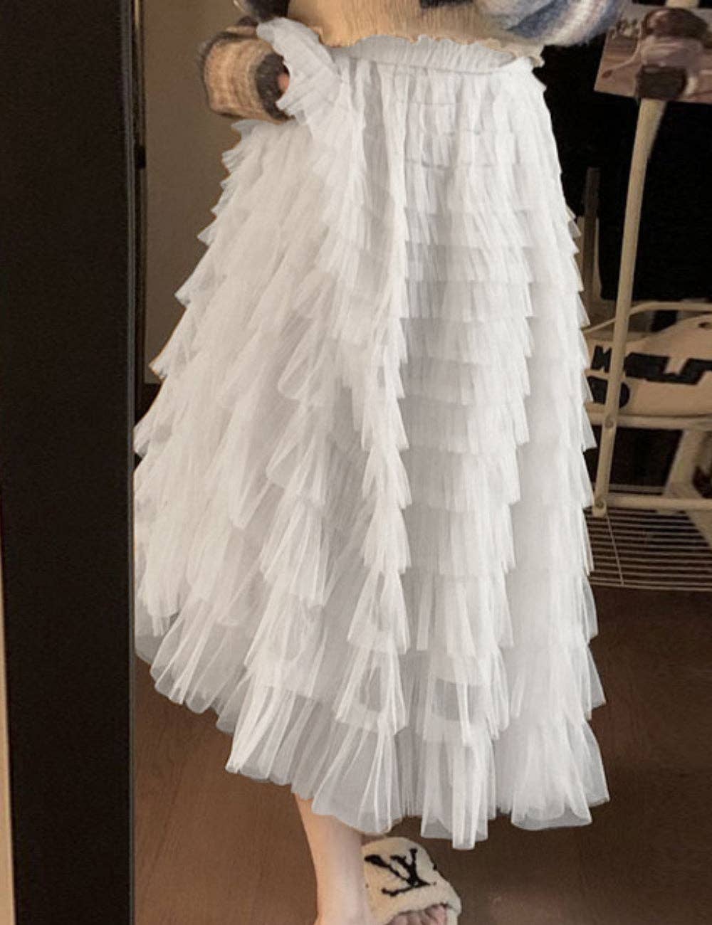 Ladies Solid Color Ruffle Guazy Midi Skirt SKS41176